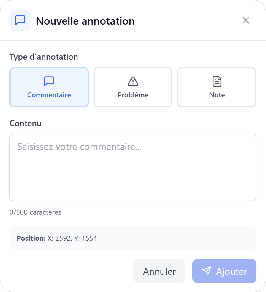 Chaque annotation est liée à une position précise (X/Y) sur le plan.